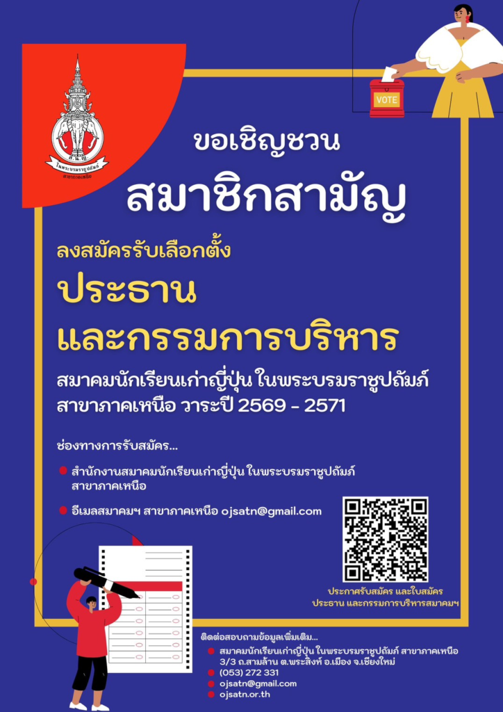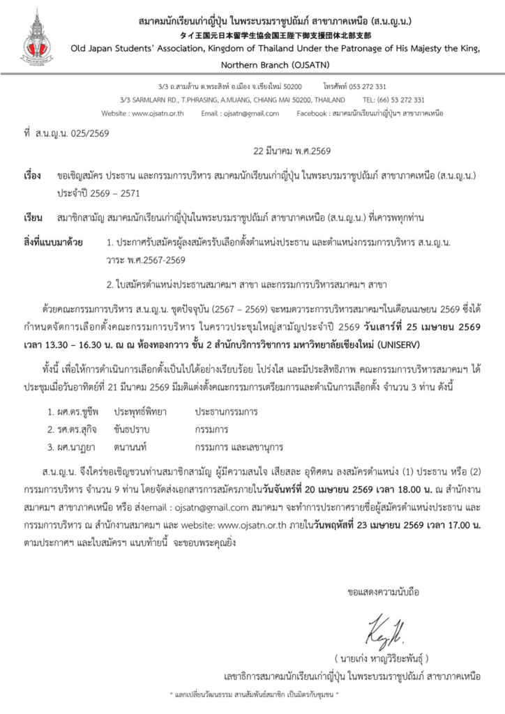 สมาชิกสัมพันธ์ ประกาศรับสมัครผู้ลงสมัครรับเลือกตั้งตำแหน่งนายกสมาคมฯ และกรรมการบริหารสมาคมฯ สาขาภาคเหนือ วาระ พ.ศ.2569-2571 By adminOn 24 มีนาคม 202624 มีนาคม 2026